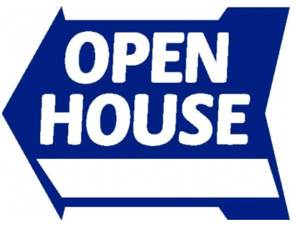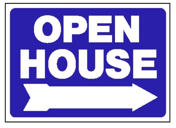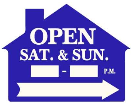 Corrugated Blue House Shape Open Sat. & Sun. __-__ P.M. w/Arrow Sign - $8.00