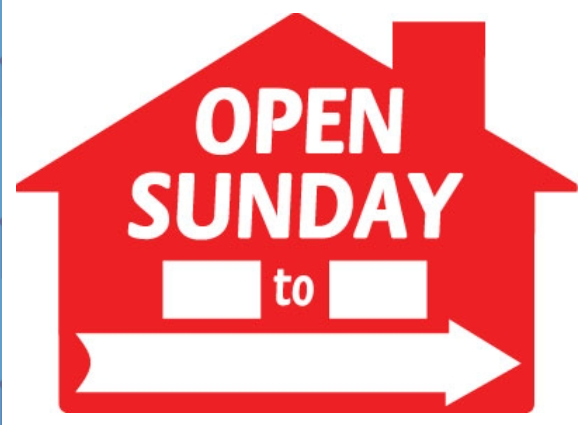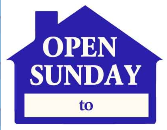Corrugated Blue House Shape Open Sunday. __-__ Sign - $8.00