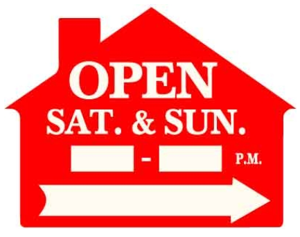 Corrugated Red House Shape Open Sat. & Sun. __-__ P.M. w/Arrow Sign - $8.00
