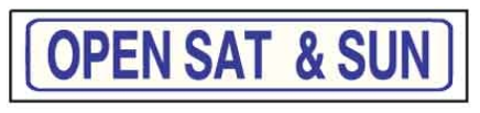 Blue Open Sat. & Sun. Solid Sign Riders 6" x 24" - $8.00