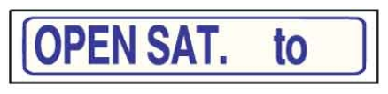 Blue Open Sat. __to__ Solid Sign Riders 6" x 24" - $8.00