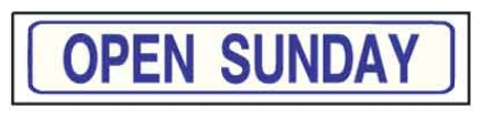Blue Open Sunday Solid Sign Riders 6" x 24" - $8.00