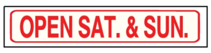Red Open Sat. & Sun. Solid Sign Riders 6" x 24" - $8.00