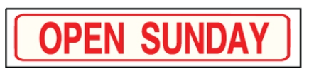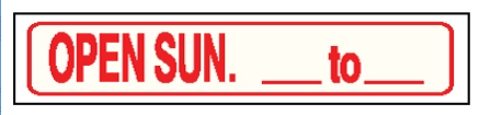 Red Open Sunday 1-4 Solid Sign Riders 6" x 24" - $8.00